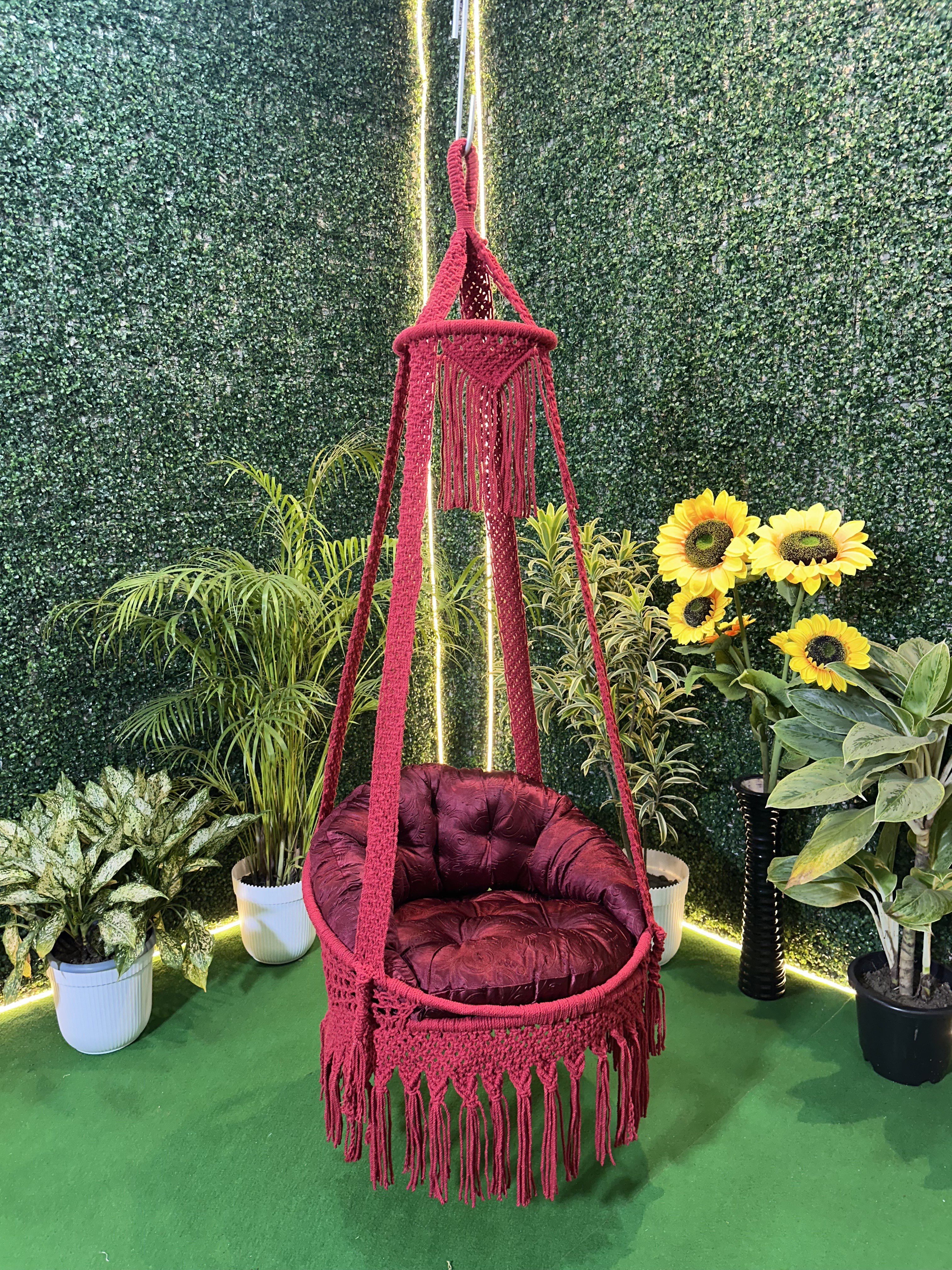Burgundy Bliss Macramé Hanging Swing