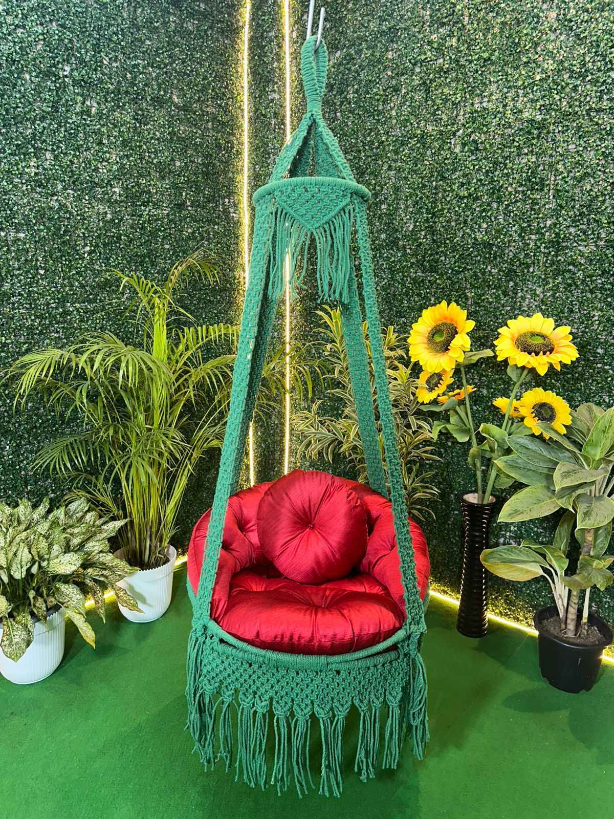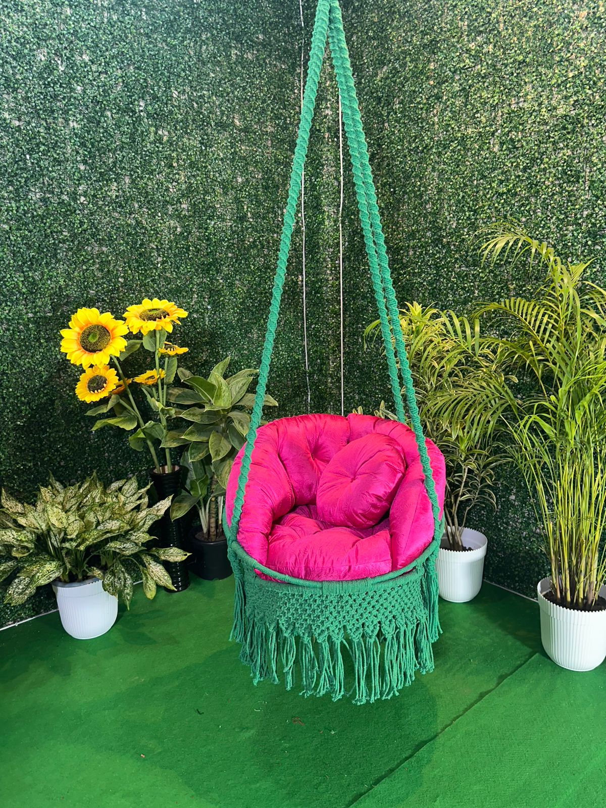 Emerald Blossom Macramé Hanging Swing